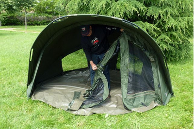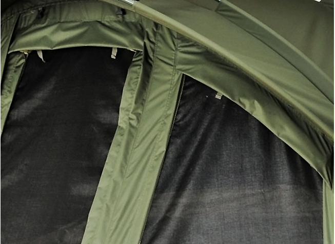 Geamurile din spate se pot deschide din interior cu ajutorul fermoarelor. Aceasta înseamnă că bivvy-ul poate fi închis din interior dacă plouă brusc