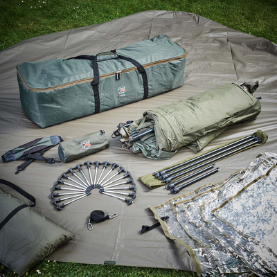 Geantă de transport spațioasă din poliester de 600 de denari, întărită pe lateral, cu curea de umăr căptușită și mânere căptușite pentru a găzdui bivvy și supraînveliș